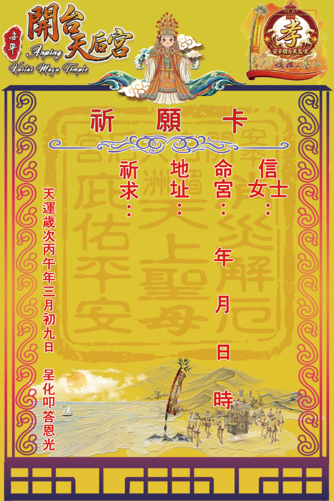 2026/4/13 (一) 丙午年『迎媽祖上香山』祈福背袋、門燈賀彩免費贈送!